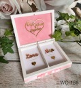 Na wieku pudełka naklejony przestrzenny dekor 2 połączonych serc w kolorze błyszczącym - lustrzane różowe złoto