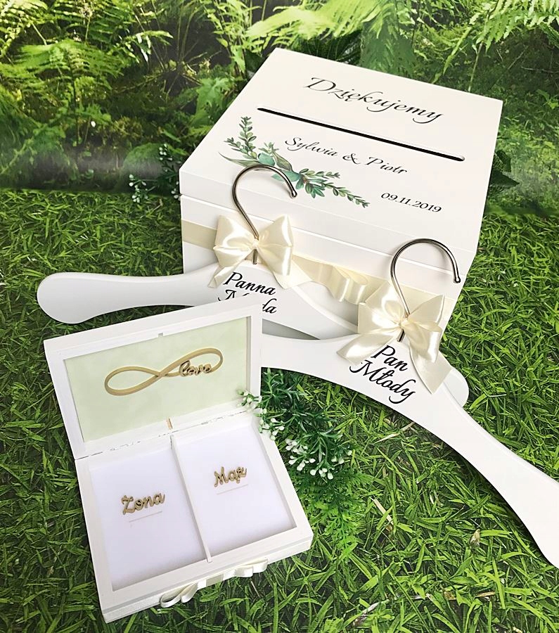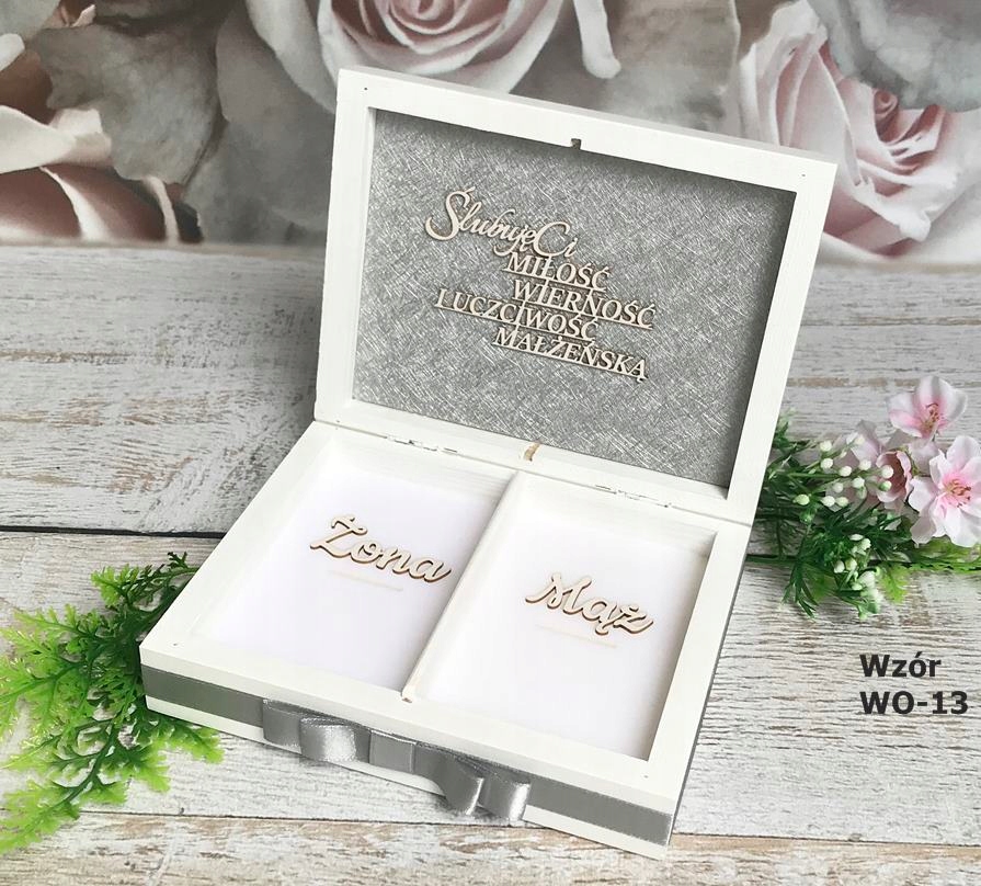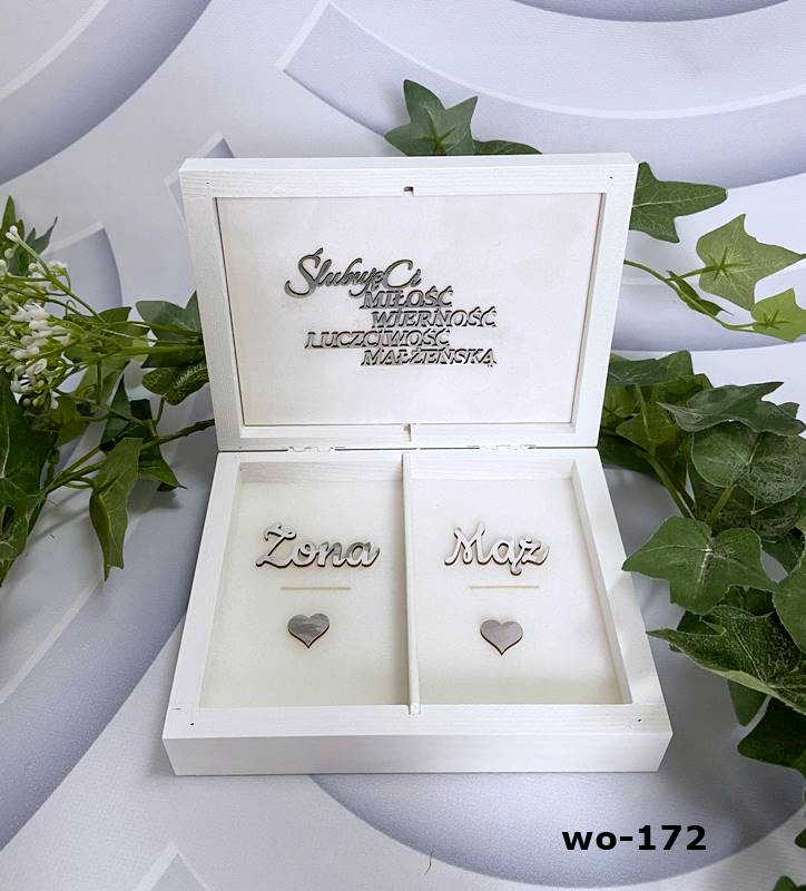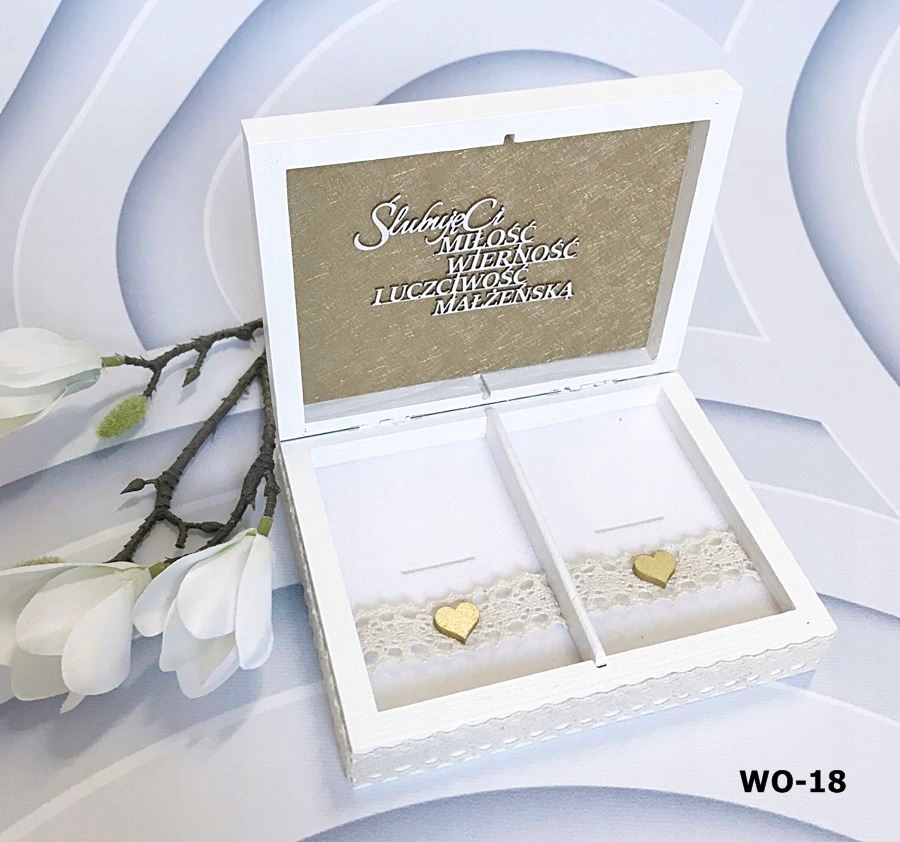 Pudełko na obrączkI wykonane z drewna , malowane na biało