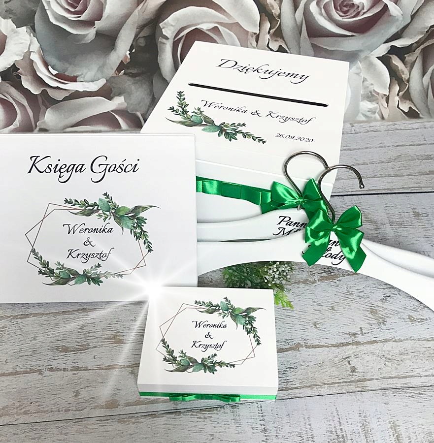 Trwała grafika nanoszona bezpośrednio na przedmiocie, pudełko w około przepasane wstążka z kokardą