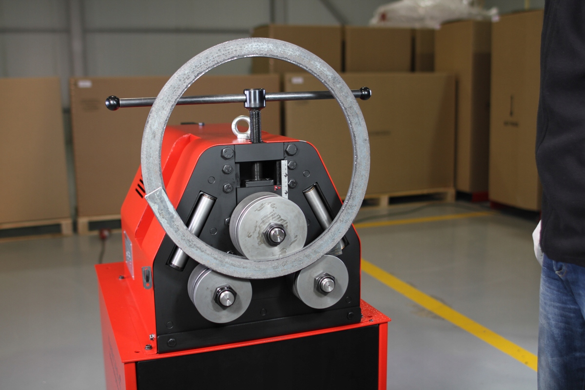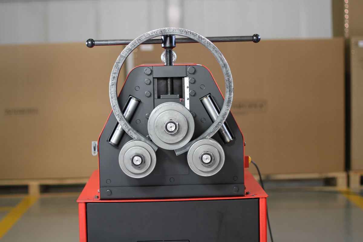 Гибочный станок MC150B предназначен для скручивания профилей и труб в дуги и круги с фиксированным радиусом. Регулировка радиус изгиба осуществляется с помощью ручки для изменения положения верхнего ролика. С подвижной осью имеется четкий миллиметровый калибр.