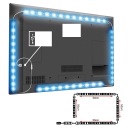Лента питается от USB-штекера, а управление осуществляется с помощью беспроводного пилот. Благодаря светодиодам RGB можно изменять цвет и интенсивность света, а также эффекты и их скорость. От внизу имеется клейкая лента. Ленту можно обрезать через каждые 1 светодиод (3,33 см) в местах обозначены линиями. Гибкость ленты делает ее пригодной для универсального применения. Ее можно согнуть.