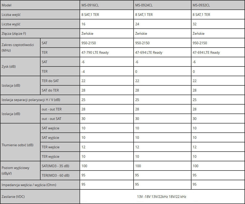 Multiswitch kaskadowy Spacetronik Pro Series MS-0924CL LTE