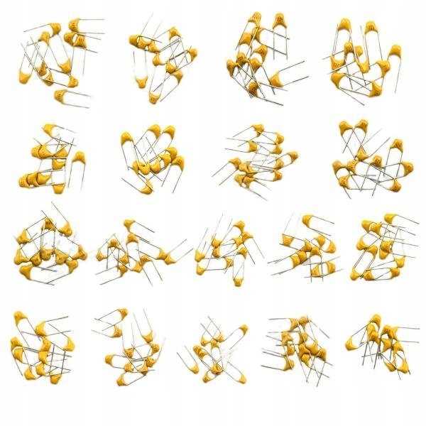 Zestaw 18 najpopularniejszych wartości kondensatorów monolitycznych na napięcie 50V w rastrze 5mm, używanych przez każdego elektronika. Kondensatory są popakowane w torebki strunowe, każda wartość oddzielnie. W skład zestawu wchodzą następujące wartości: 20pF x10szt 22pF x10szt 30pF x10szt 100pF x10szt 220pF x10szt 330pF x10szt 470pF x10szt 1nF x10szt 2.2nF x10szt 10nF x10szt 22nF x10szt 33nF x10szt 47nF x10szt 100nF x10szt 220nF x10szt 330nF x10szt 470nF x10szt 1mF x10szt Całość zapakowana w torebkę strunową z opisem zawartości. Tolerancja ilościowa: +/- 5%.