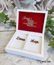 Na zewnątrz pudełka naklejony przestrzenny dekor gołąbki lub serca ( dekor lakierowany w kolorze złotym lub srebrnym) w zależności od wybranego modelu