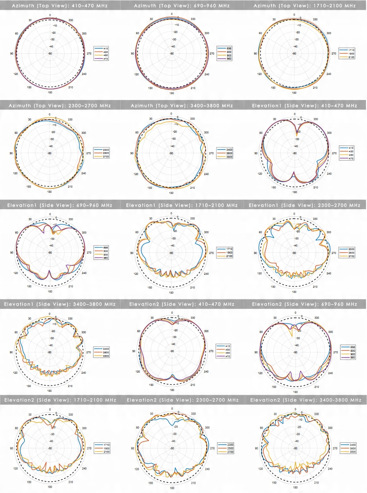 5,8 дби усиление пиковые для всех полос от 410-3800 Мгц: