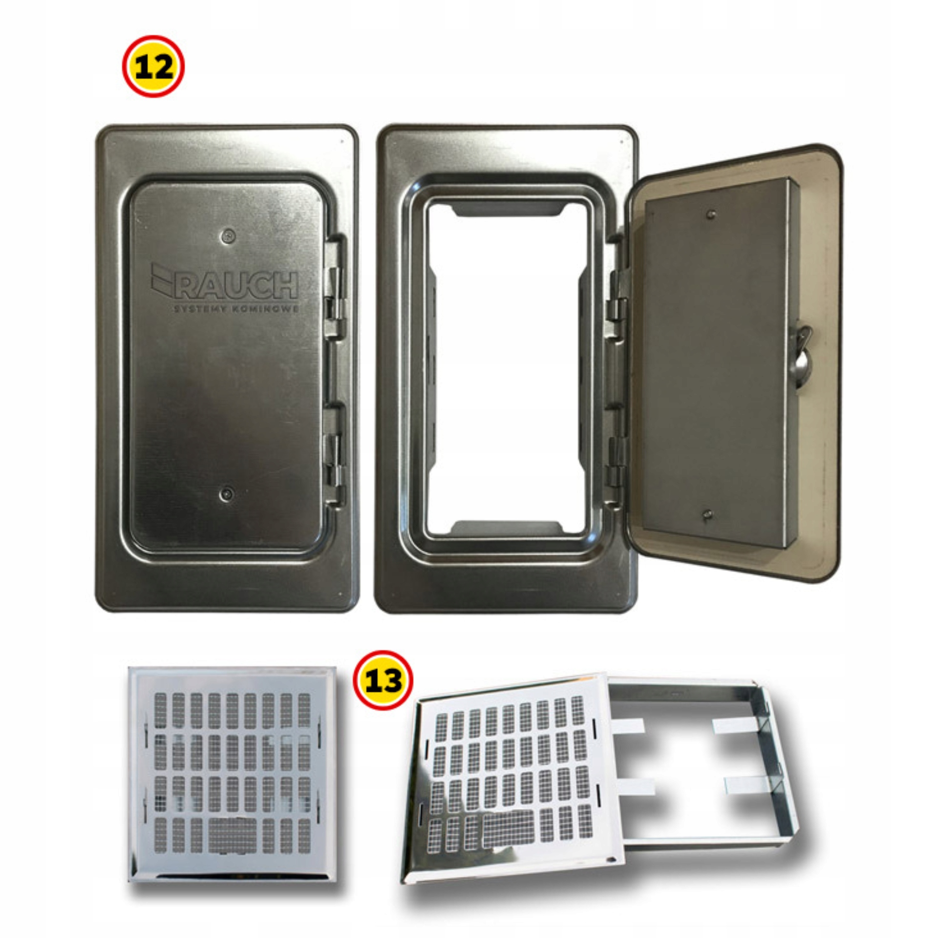 Wysokiej jakości izolowane wełną (12) DRZWICZKI KOMINOWE, niemieckiego producenta, gwarantują bezpieczeństwo oraz szczelność przewodu kominowego.