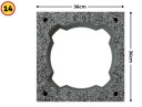 System zawiera zbrojoną, (7) BETONOWĄ PŁYTĘ PRZYKRYWAJĄCĄ, zapewniającą swobodny ruch ceramiki podczas eksploatacji. Zabezpiecza ona komin przed warunkami atmosferycznymi, łącznie z kanałami wentylacyjnymi, w zależności od konfiguracji komina.