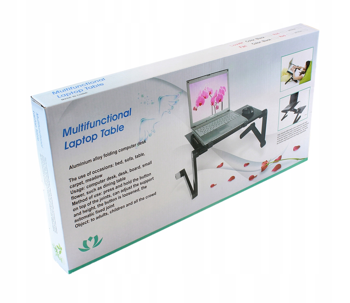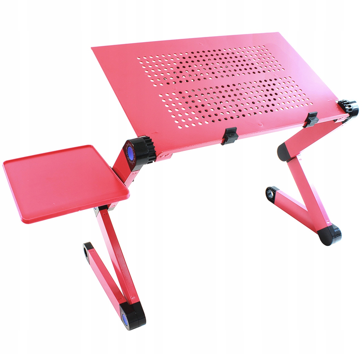 Aluminiowy, regulowany stolik pod laptopa z funkcją chłodzenia. Charakteryzuje się lekką i solidną konstrukcją. Umożliwia komfortowe korzystanie z notebook'a nawet w pozycji leżącej. Pełna regulacja nachylenia blatu oraz nóżek, zapewnia dostosowanie stolika do potrzeby użytkownika. Funkcję chłodzącą zapewnia cichy wentylator zasilany z portu USB. Stolik wyposażony w dodatkową półkę na mysz. To niezwykle ergonomiczne rozwiązanie zwiększające wygodę korzystania z laptopa!