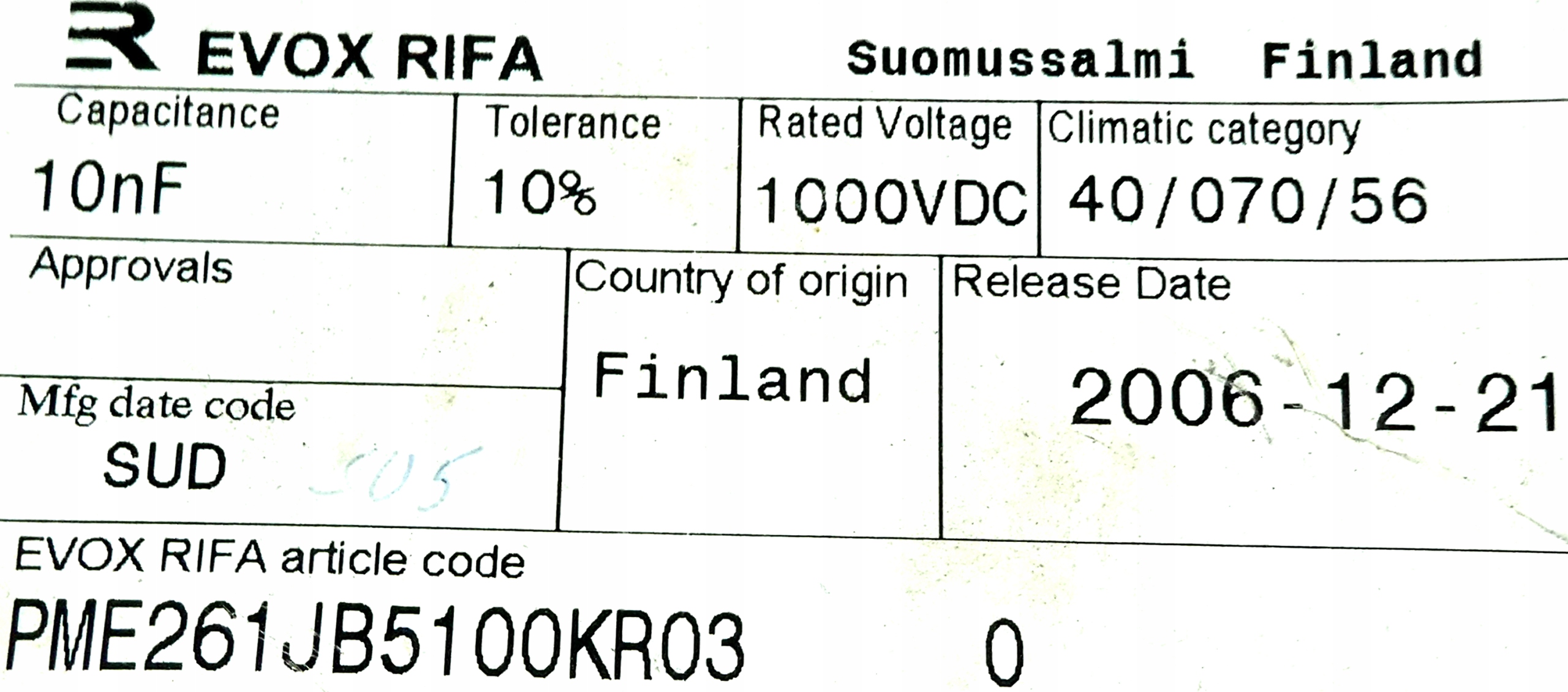 Номер. партия: PME261JB5100KR03