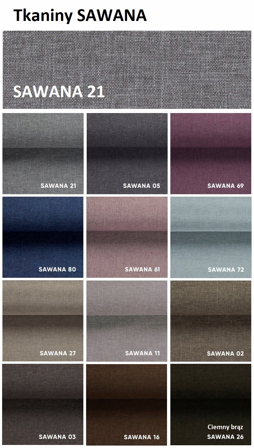Sawana-это приятная на ощупь ткань tapicerska, которая имеет естественную структуру, к иллюзии, напоминающей лен. Доступна в универсальной цветовой гамме. Преимущество ткань очень высокая стойкость к истиранию (более 100 000 циклов Мартиндейл"). Благодаря этому материал подойдет идеально для большой мебели, таких как углы, диваны и кресла. Продукт легко поддерживать в чистоте.