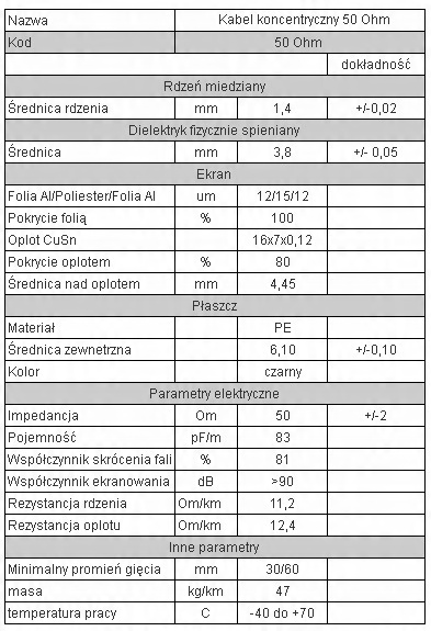 Kabel nowoczesnej konstrukcji, nisko tłumienny