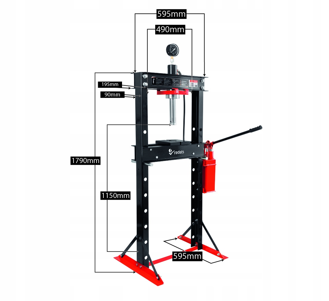 To urządzenie działa w zakresie 0-1020 mm i posiada aż 8 stopni regulacji wysokości blatu roboczego - takie rozwiązanie pozwoli Ci na łatwe ustawienie wysokości podłoża roboczego. Nacisk tej prasy hydraulicznej wynosi 20 ton.