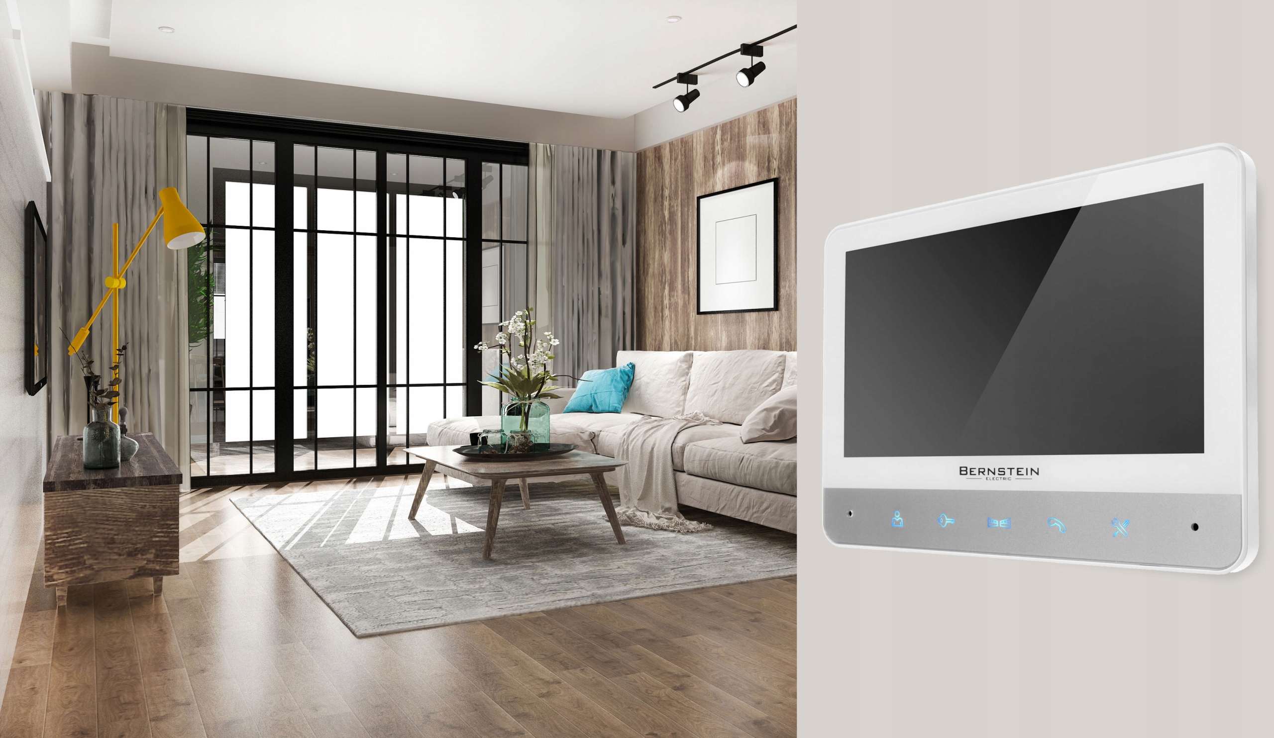 Монитор оснащен регуляторами для регулировки громкость разговора, яркость и насыщенность изображения.