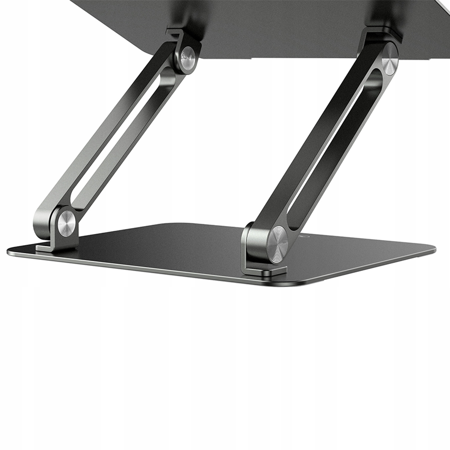 Produkt wyposażony został w silikonowe podkładki anty poślizgowe zamontowane zarówno na podstawie urządzenia, jak i na podstawce stabilizującej laptop.