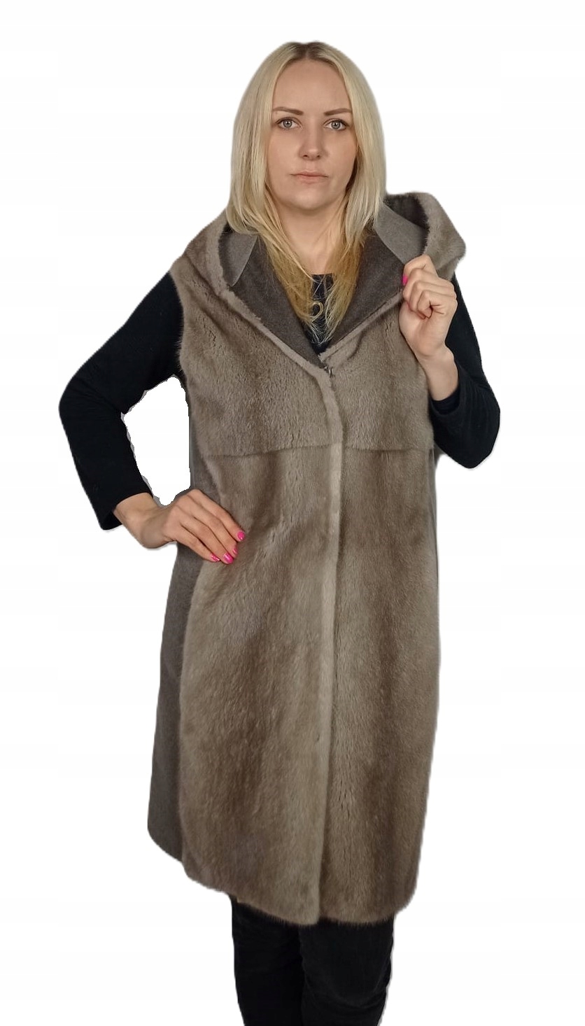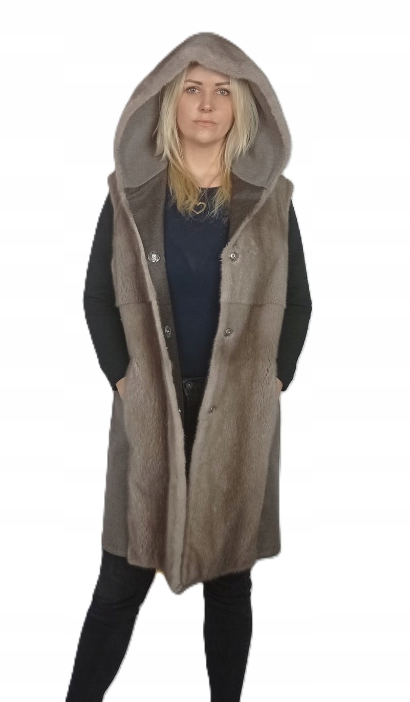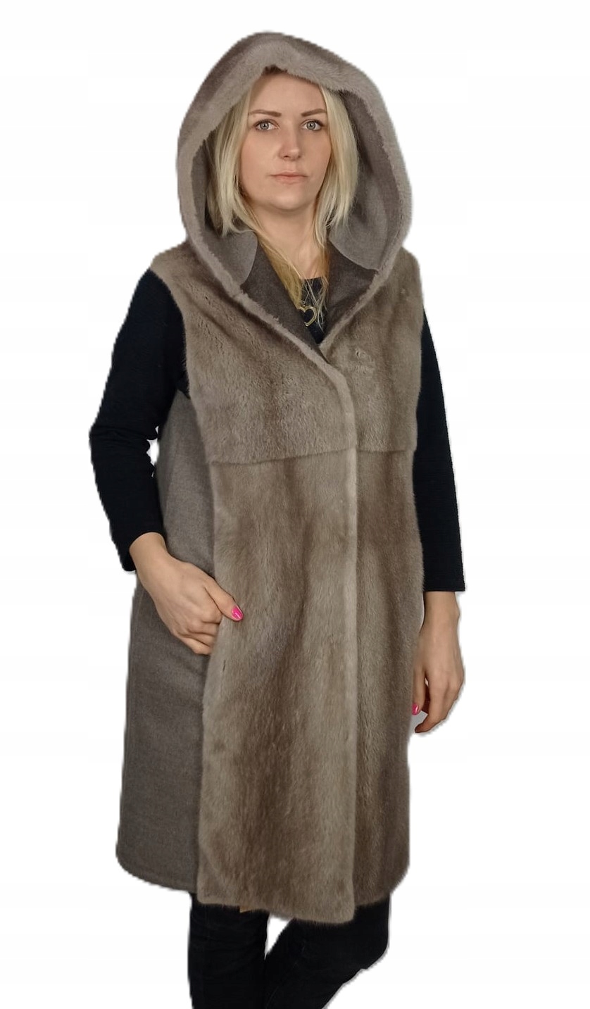 Damska kamizelka z kaszmiru i naturalnego futra norek z kapturem