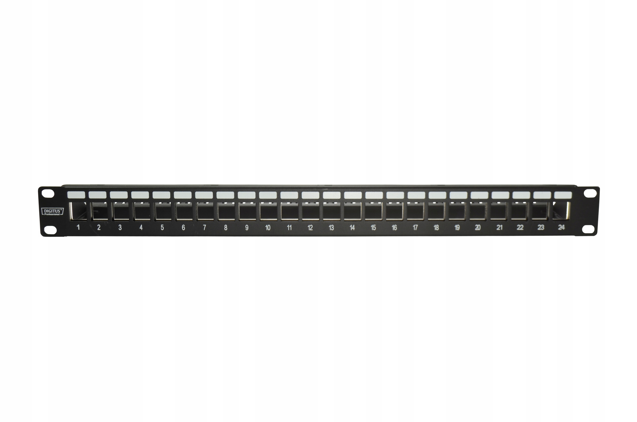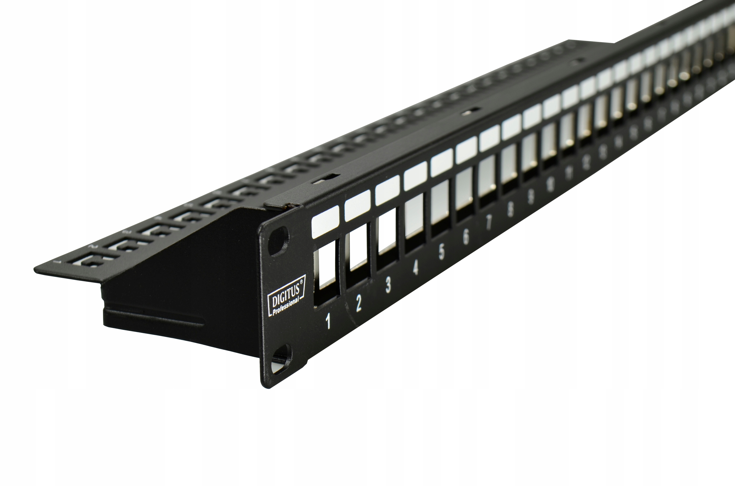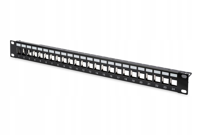 Возможность размещения до 24 экранированных или неэкранированных модулей Keystone RJ45. Дополнительно применены: нумерация портов и описательные поля, облегчающие управление.